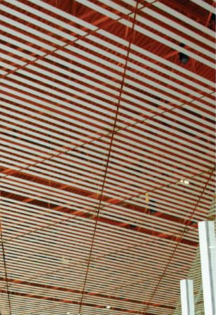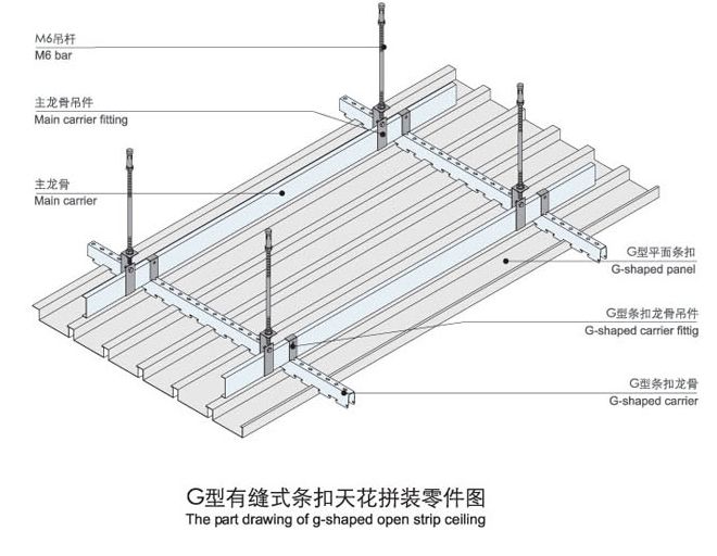 G型有縫式條扣板采用鋁合金平板或沖孔板經(jīng)靜電噴涂而成,具有防火、防潮,吸音功能,板面及線條的整體及連貫性強(qiáng),給人一種舒適暢快之感受。廣泛用于機(jī)場(chǎng)、大廳、車(chē)站及走廊通道等方面。
